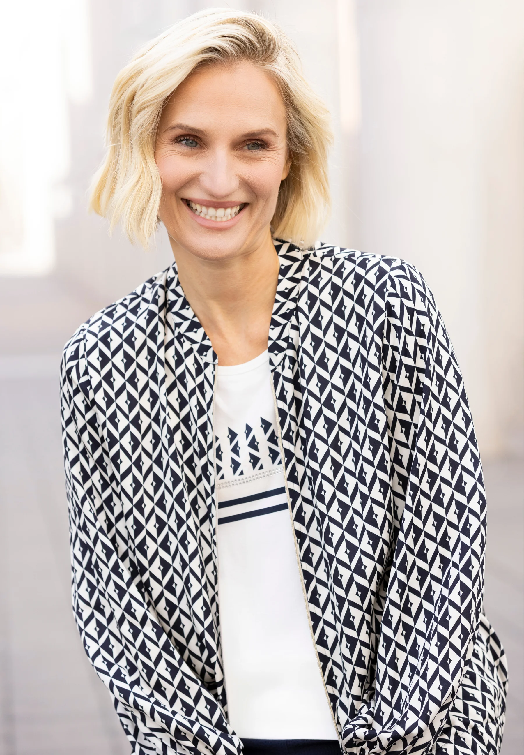 Nachhaltigkeit ist uns wichtig: Viele unserer Shirts und Tops bestehen aus zertifizierten LENZING™ ECOVERO™ Viskose und Baumwolle – für weniger Emissionen und eine bessere (Um-) Welt mit unseren Materialien. Rund 80 % der Stoffe stammen aus Europa, etwa 75 % der Kollektion wird in Europa produziert – viele Teile in unseren Werken in Osteuropa. Das verkürzt Transportwege und senkt so den CO₂-Ausstoß und unsere Photovoltaikanlage mit mehr als 2500 qm liefert grüne Energie für das ganze Unternehmen.