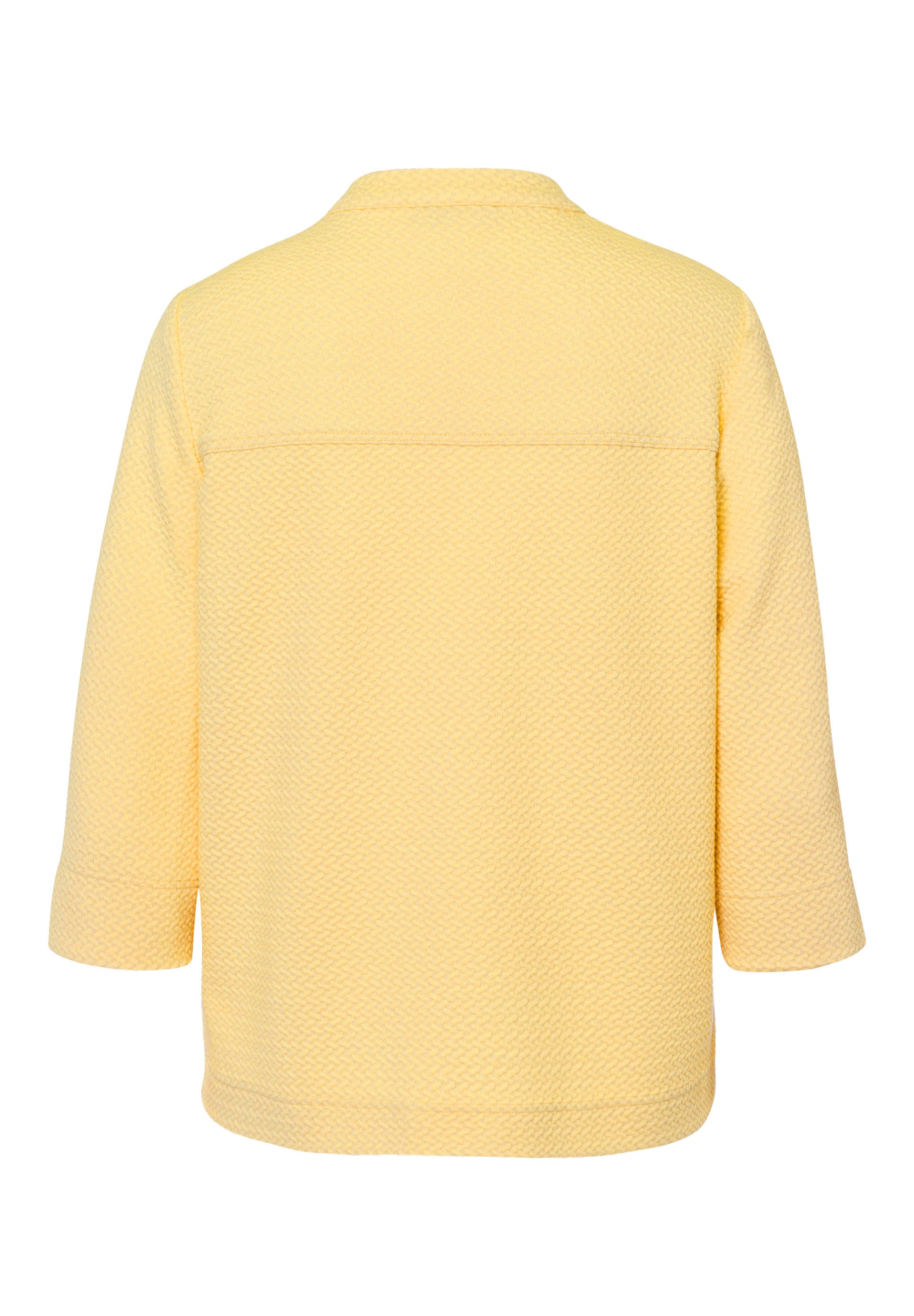 Die Jacke für Damen besticht durch eine strukturierte Optik, 3/4-Ärmel und einen runden Ausschnitt. Ein verdeckter Verschluss vorne sorgt für ein schlichtes Design. Die taillierte Form und seitliche Taschen runden den eleganten Look ab