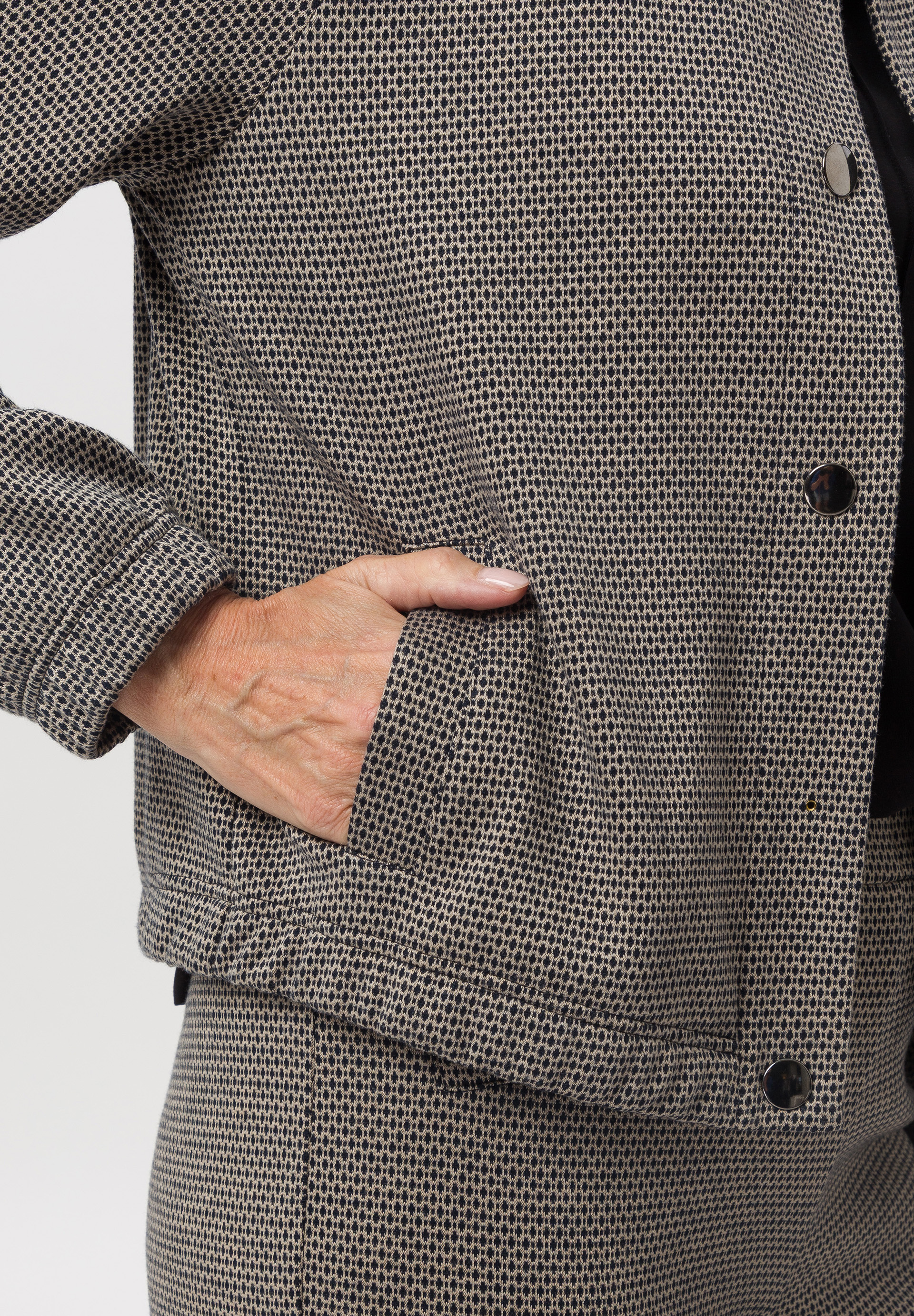 Jacke in Blousonoptik perfekt in Szene gesetzt. Superbequemer Style mit Langarm und modernen Druckknöpfen. Schöne Akzente setzen die Leistentaschen, der modische Raglanarm und die elastischen Saumabschlüsse.