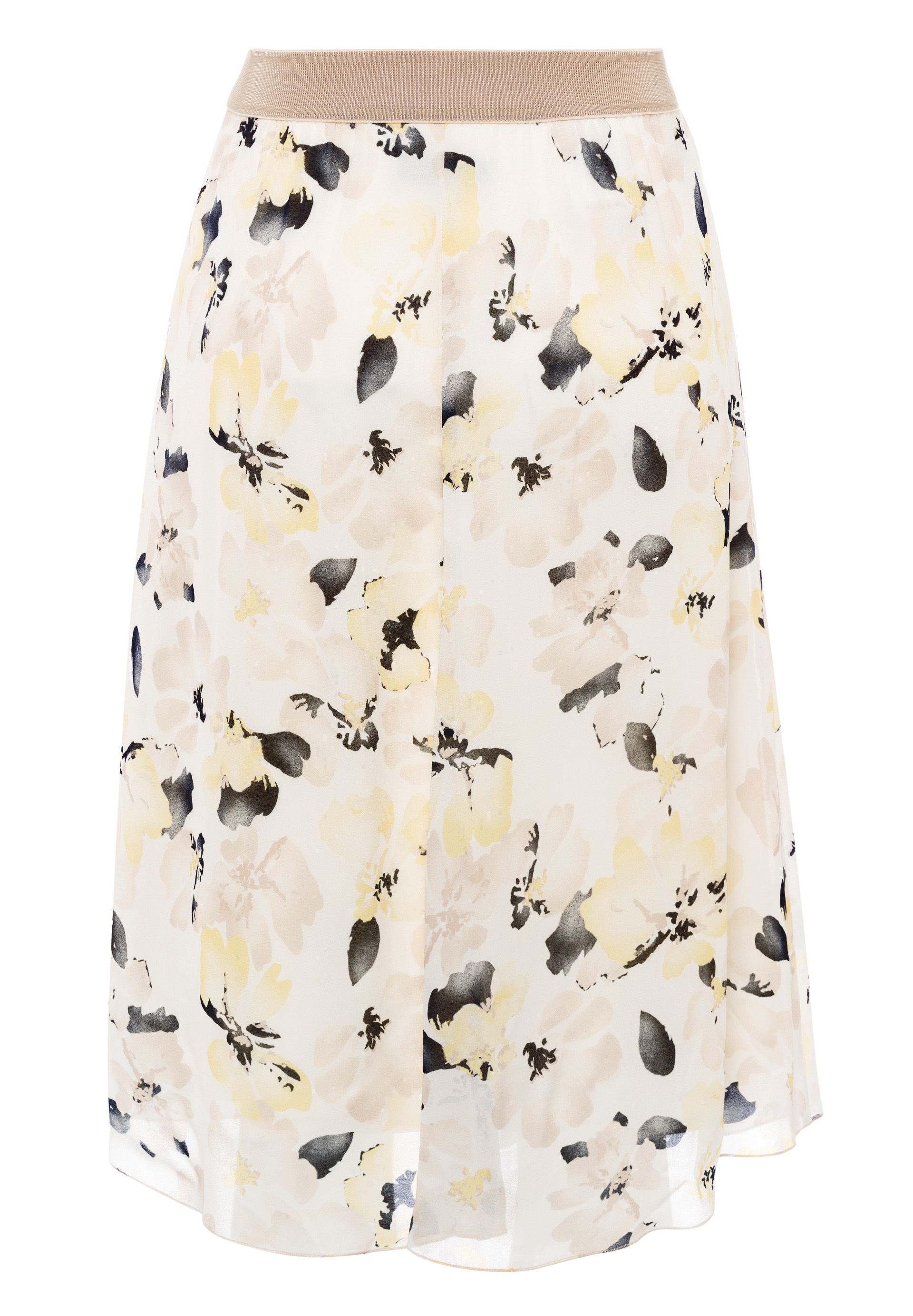 Druckrock in charmanter Länge. Die weich fließende Viskose-Qualität verleiht dem gefütterten Modell einen schönen Schwung. Mit flach anliegendem und komfortablem Schmuckgummi in der Taille.