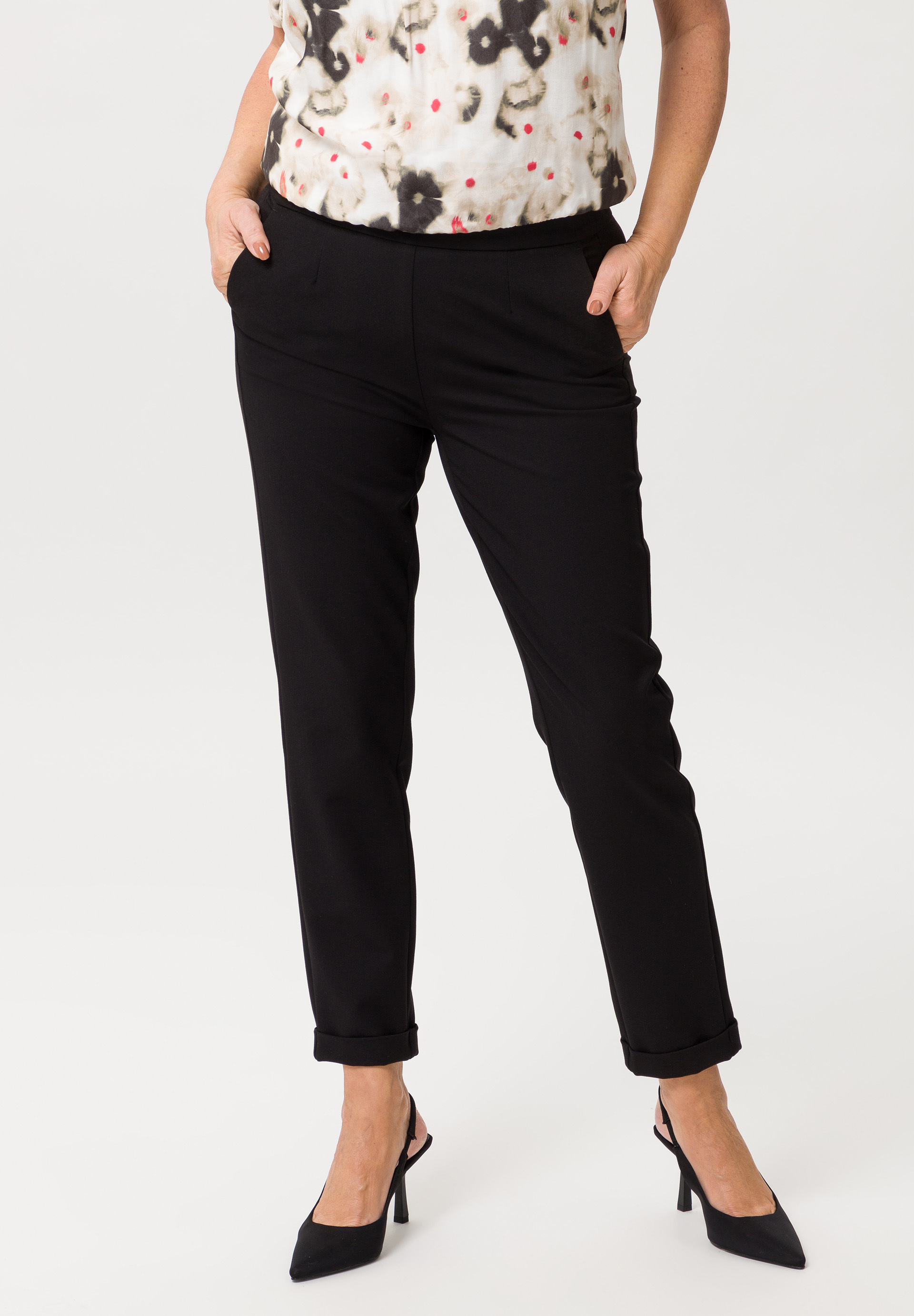 Diese Hose überzeugt mit einem eleganten Schnitt und einem elastischen Bund für optimalen Tragekomfort. Die schmale Passform und der dezente Saumaufschlag machen sie vielseitig kombinierbar – ideal für Büro und Freizeit.