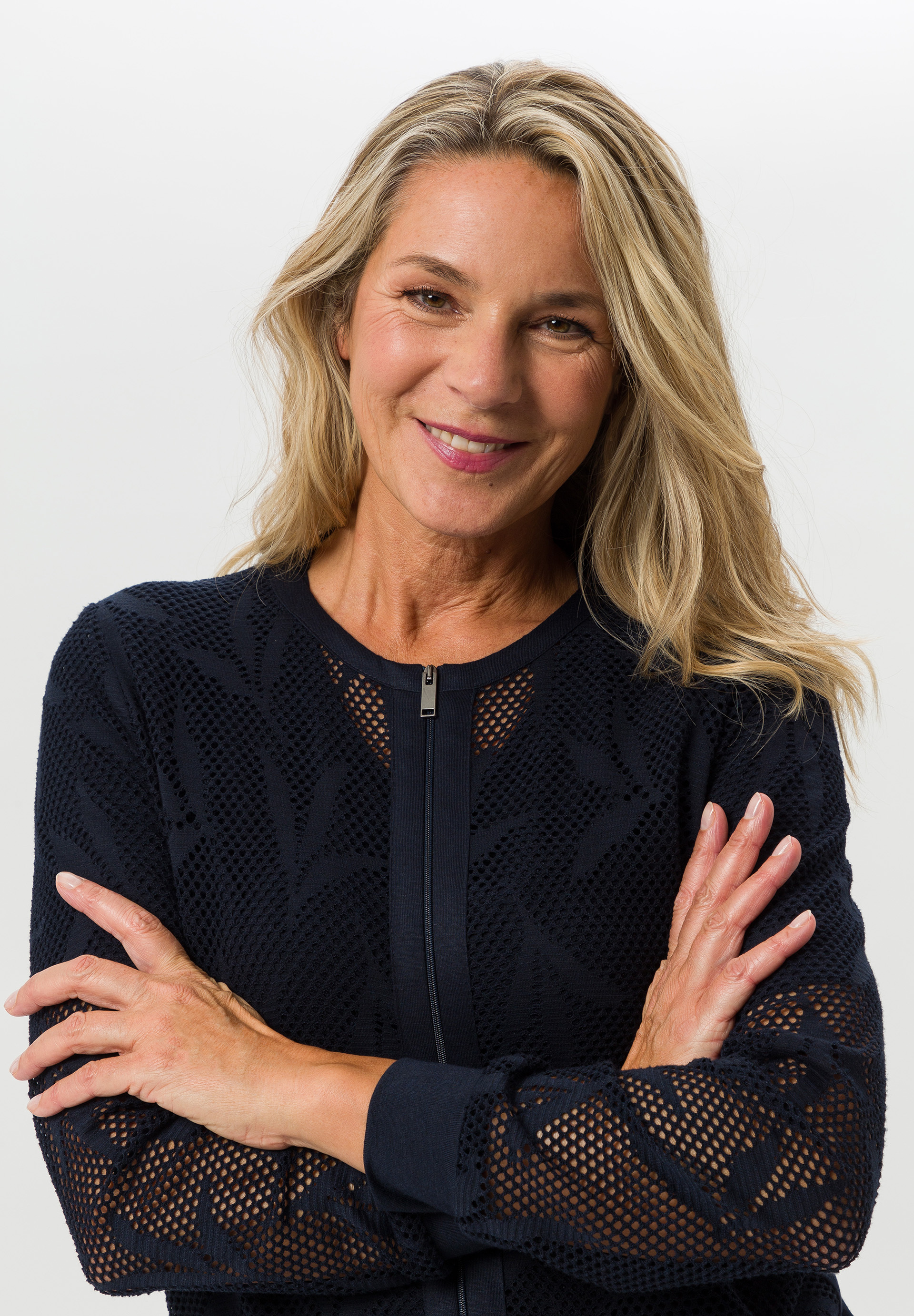 Ein bequemer Blouson in semitransparenter Jersey-Qualität, der mit seiner modernen Optik begeitsert. Der modische Style bringt Schwung in jeden Look und ist am Ausschnitt, Saum und Ärmeln mit stiltypischen Bündchen gearbeitet. Mit praktischem Frontreißverschluss.
