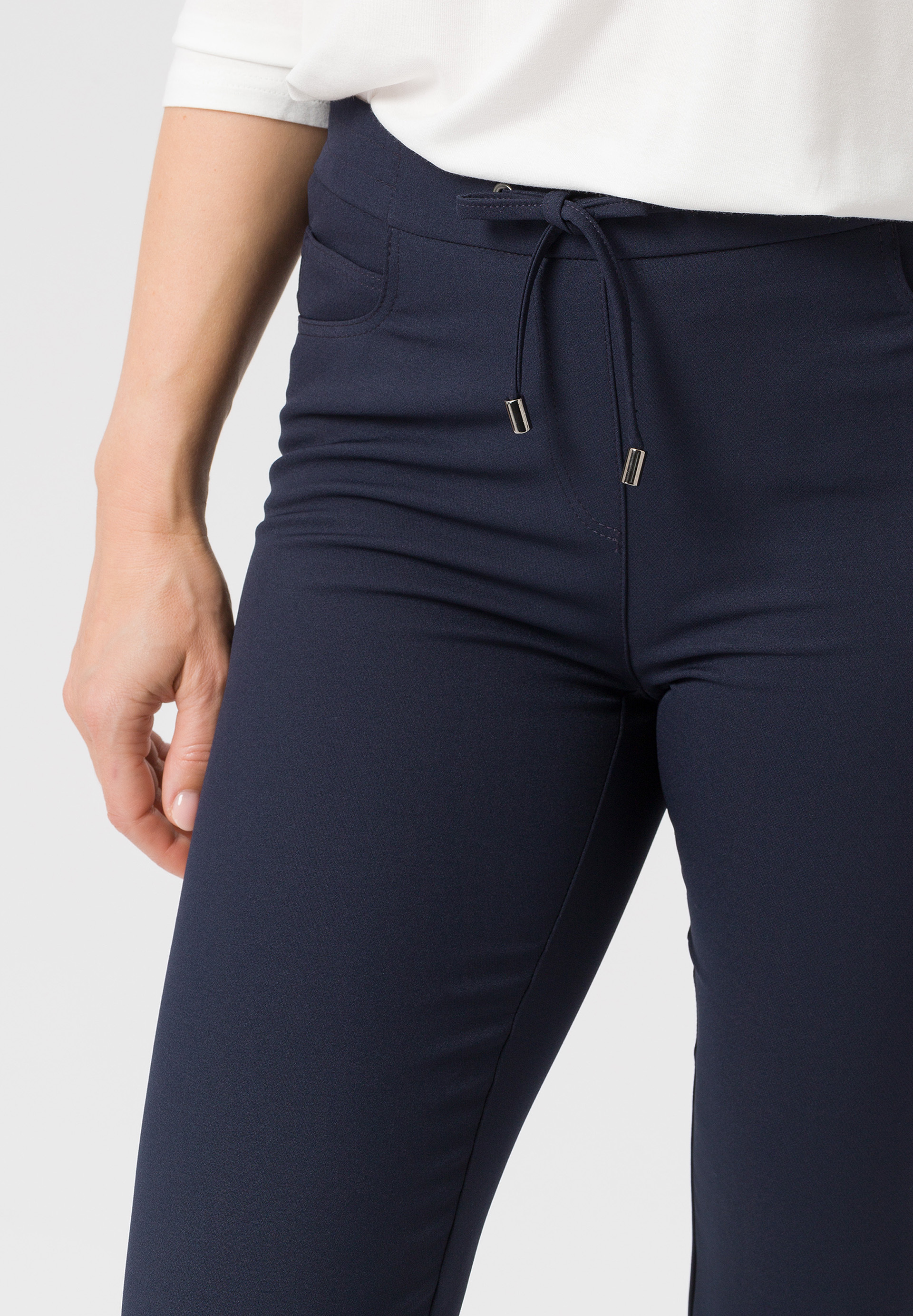 Diese Hose vereint stilvolle Eleganz mit höchstem Tragekomfort. Der elastische Bund mit Kordelzug sorgt für eine optimale Passform, während das weiche Material angenehme Bewegungsfreiheit bietet. Vielseitig kombinierbar für Freizeit und Büro.
