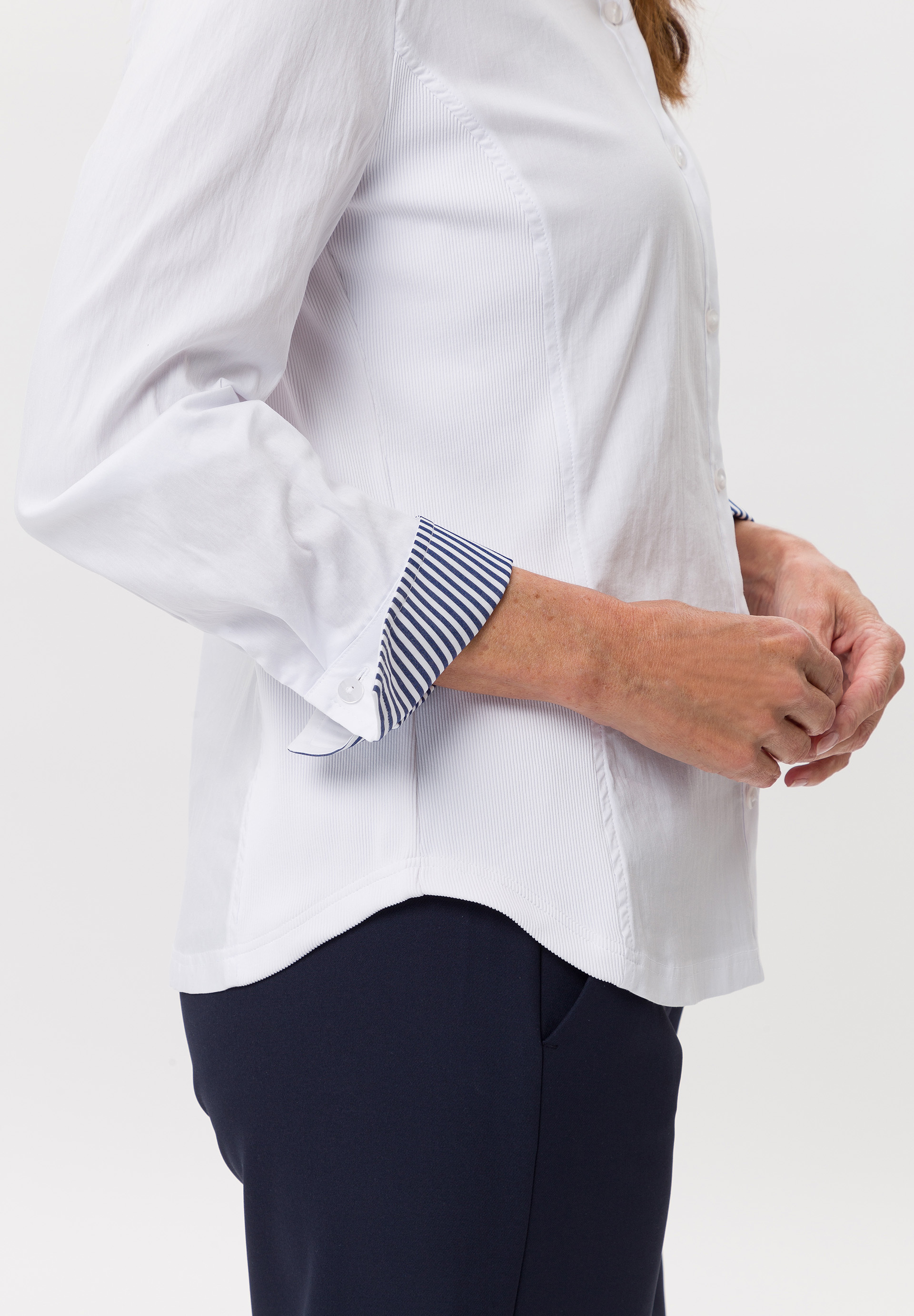 Diese elegante, langärmelige Bluse kombiniert klassische Elemente mit stilvollen Kontrastdetails an Kragen und Manschetten. Perfekt für formelle Anlässe oder stilvolle Alltagslooks