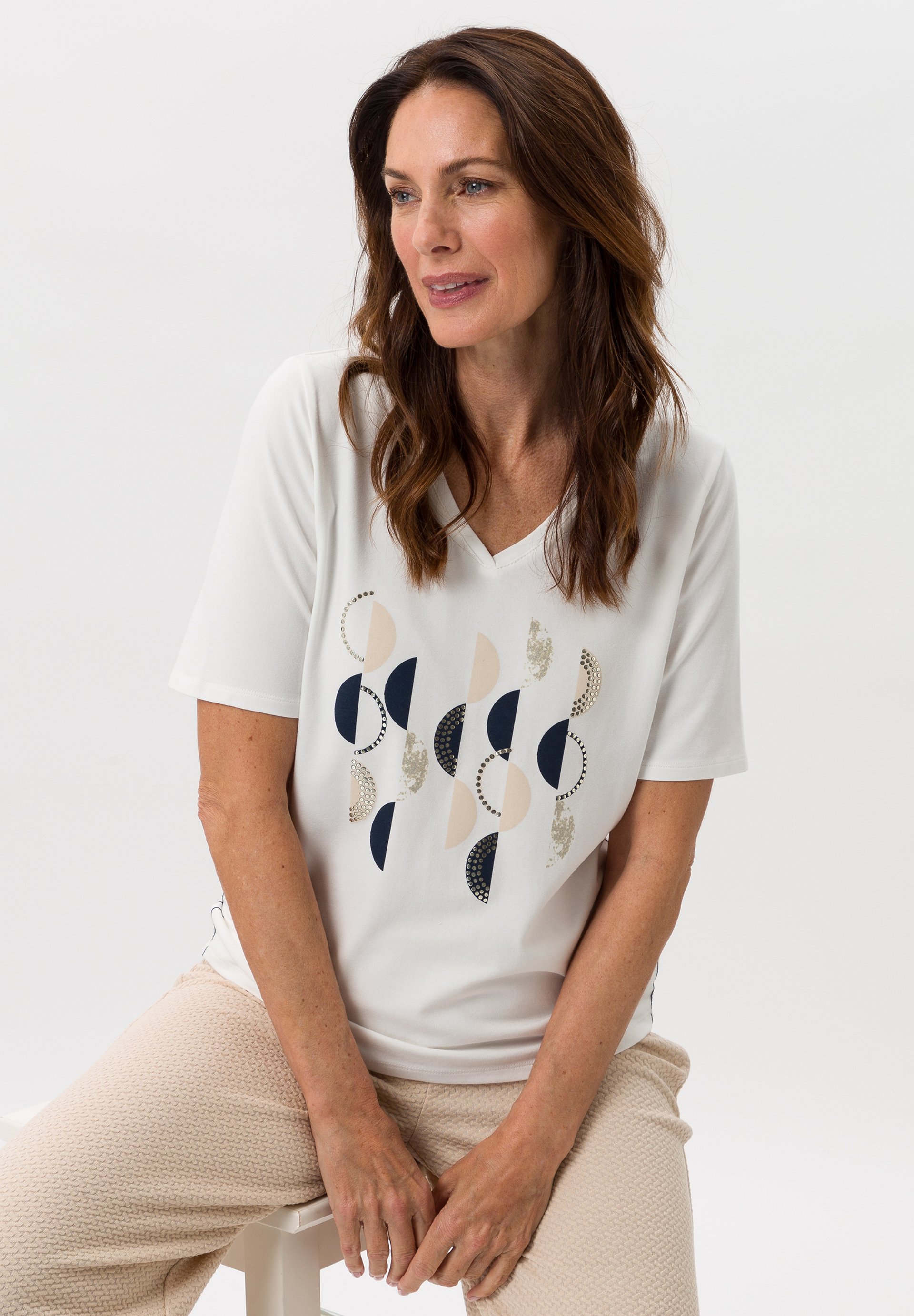Shirt aus einer weichen trageangenehmen Cotton-Modal-Qualität. Das aparte Printmotiv mit graphischen Elementen setzt einen frischen modischen Akzent und verleiht dem kombistarken Style seinen ganz besonderen Charme.