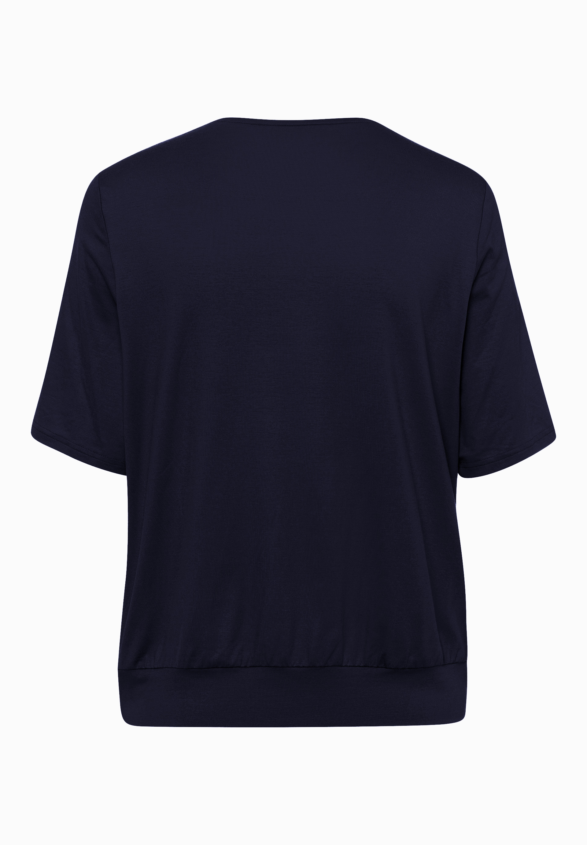 Shirt with a V-neckline and short sleeves. The soft, flowing fabric makes it comfortable to wear, while the subtle pleats at the front create a stylish look. Perfect for versatile everyday and office combinations.