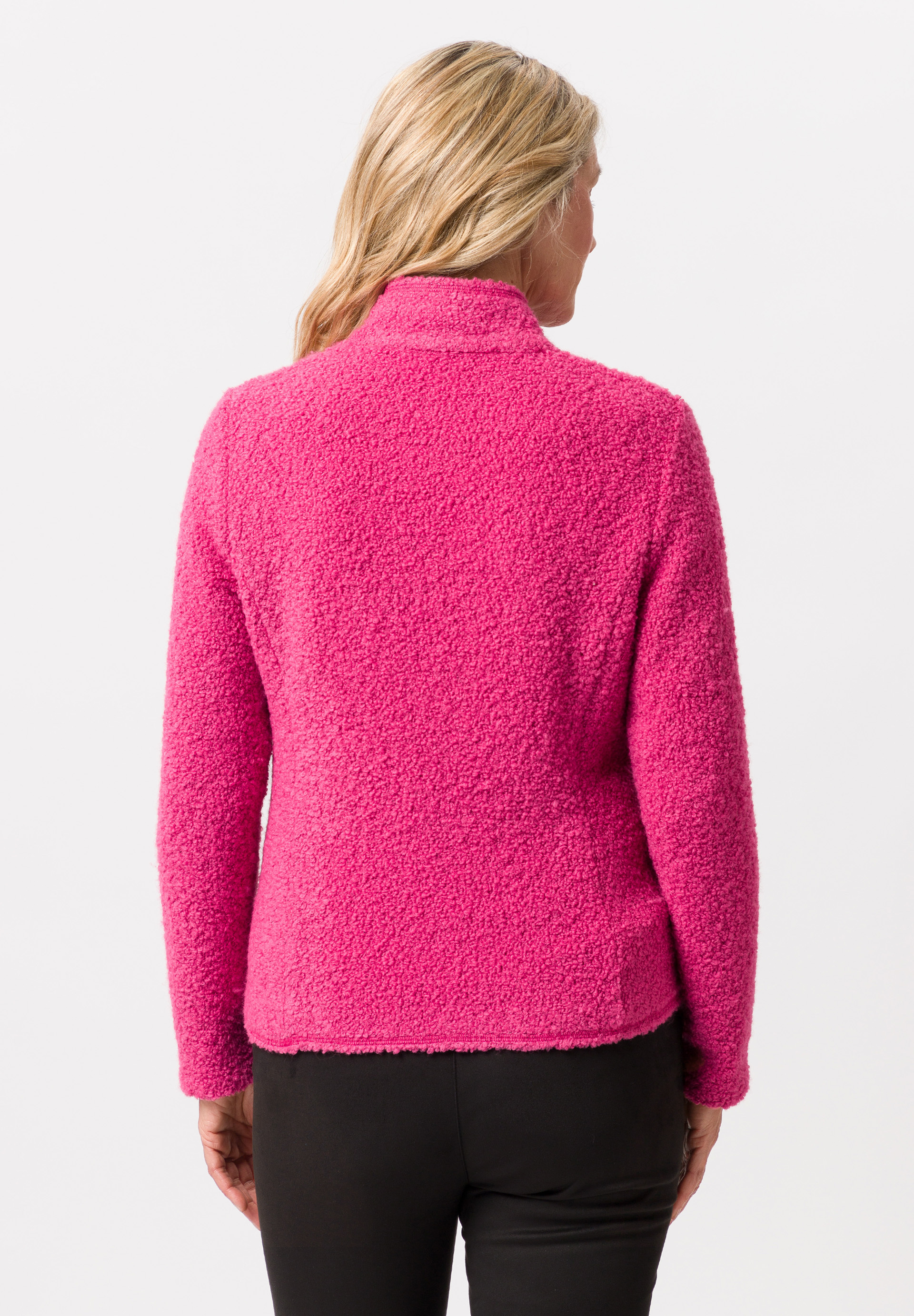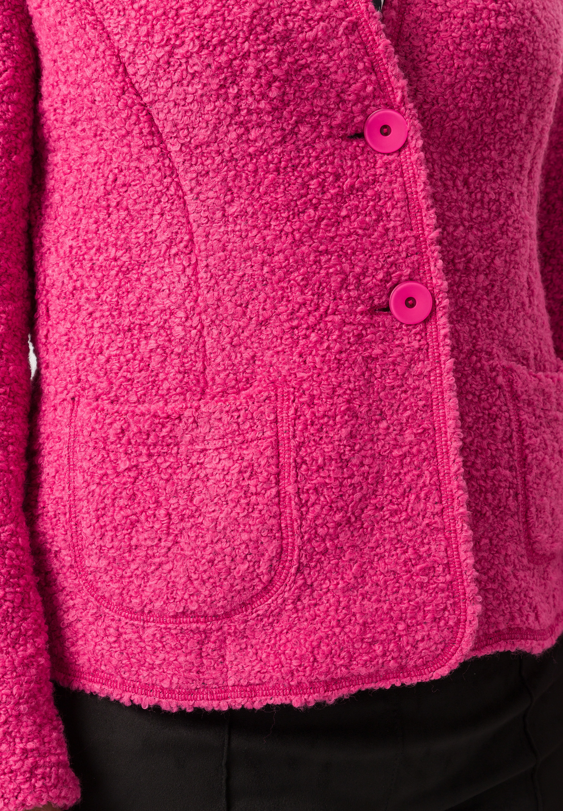 This comfortable knitted blazer for women combines feminine, fashionable and sporty style in a slightly tapered fit. Made from high-quality PAN-Mix-Boucle, it offers a super soft, lightweight quality and is easy to care for. The flattering shape and decorative flatlock edges give the blazer a modern look that is perfect for any occasion. The long-sleeved blazer with a feminine collar and button fastening is perfect for mixing and matching.