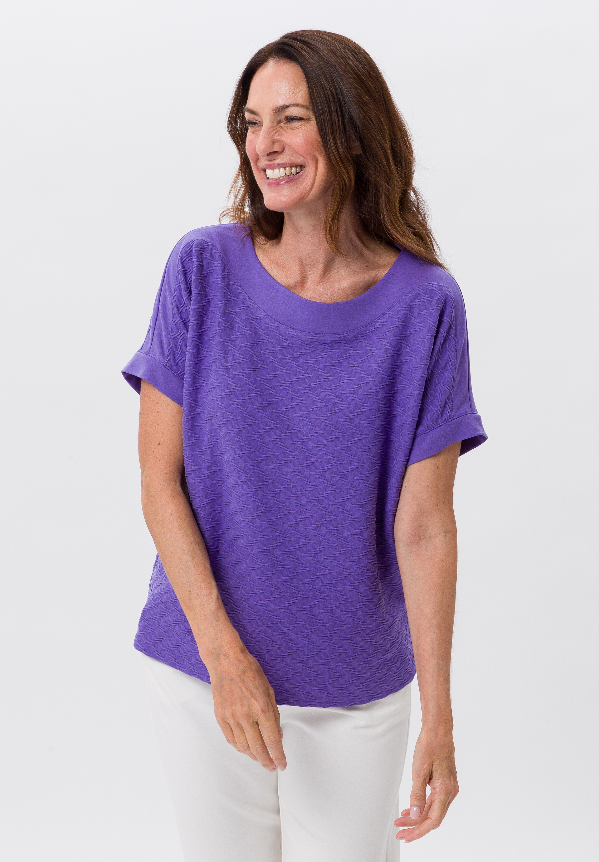 A viscose-blend shirt with a subtle texture - a perfect fashion companion for many styling options. The bateau neckline and dropped shoulders make it comfortable to wear. Decorative trims on the neckline and sleeves round off the look.