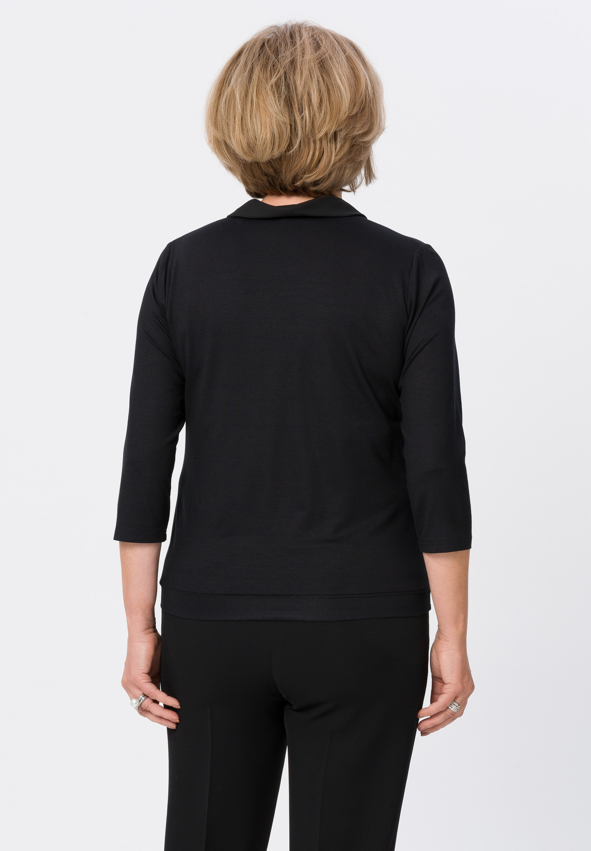 Our cropped shirt for women combines feminine charm with timeless elegance. Made from high-quality viscose fabric, it is comfortable to wear and has a figure-skimming fit. The straight cut and detailed V-slit neckline give the shirt a sophisticated touch. The easy-care and easy-to-match woven fabric, combined with the elegant tie, makes this shirt the perfect companion for any occasion.