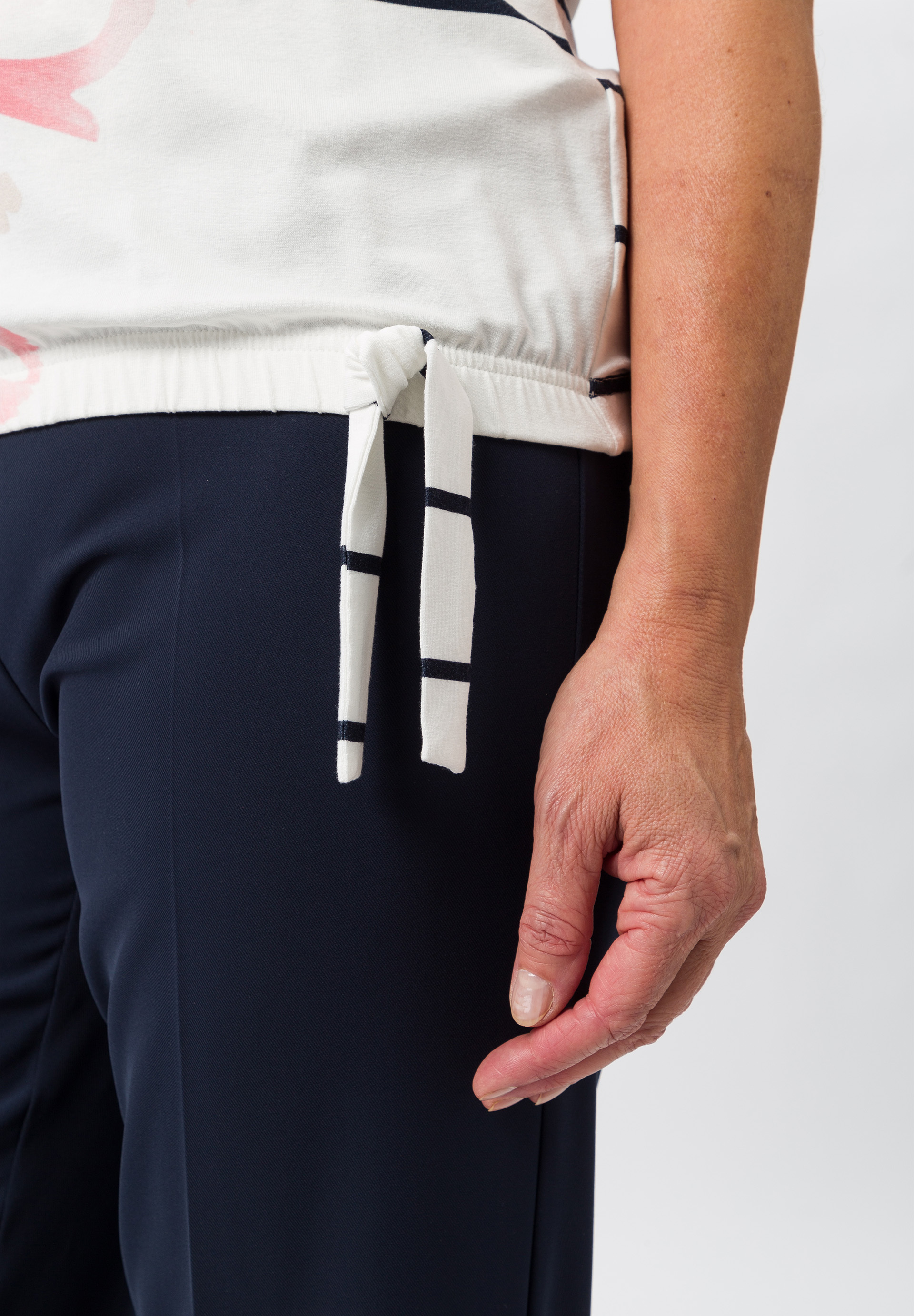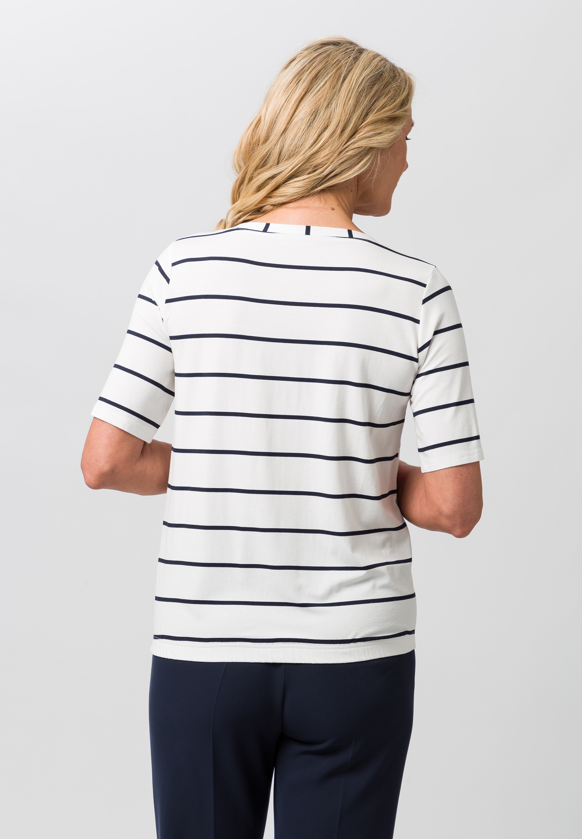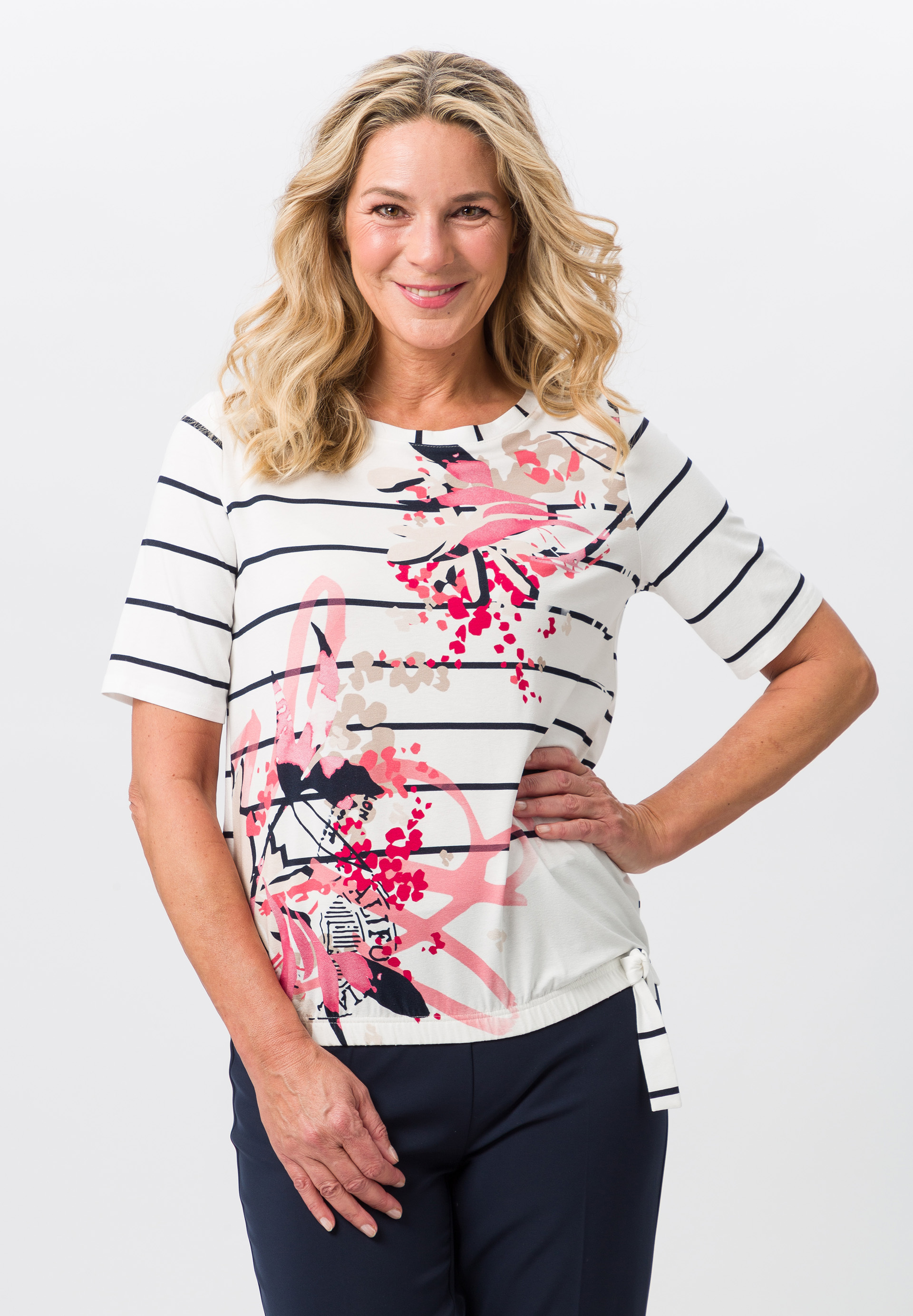 Discover our fashionably up-to-date shirt for women! This shirt has a comfortable cut and offers a perfect fit. Made from high-quality viscose jersey, it offers maximum comfort and breathability. The summery colours and the position print on the front give this shirt a unique look. With half sleeves and a round neckline, it is a basic for any occasion.