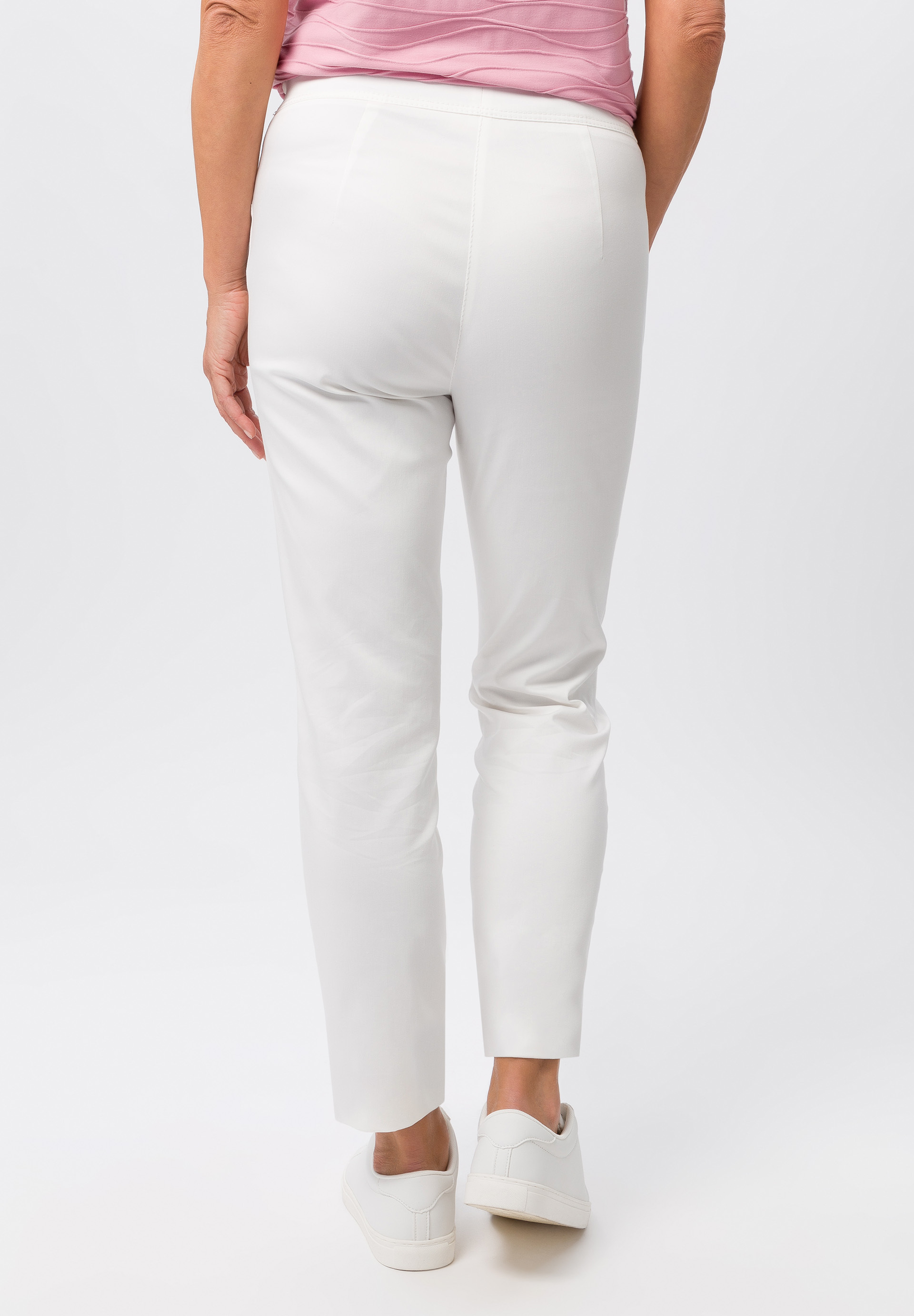 These summery, lightweight slip-on trousers combine sporty style with modern comfort. Made from a high-quality cotton blend stretch fabric, they offer a relaxed fit and a straight leg for optimum freedom of movement. The elasticated comfort waistband and fashionable topstitching complete the casual look, while the stitched piping on the front of the trousers creates a flattering silhouette.