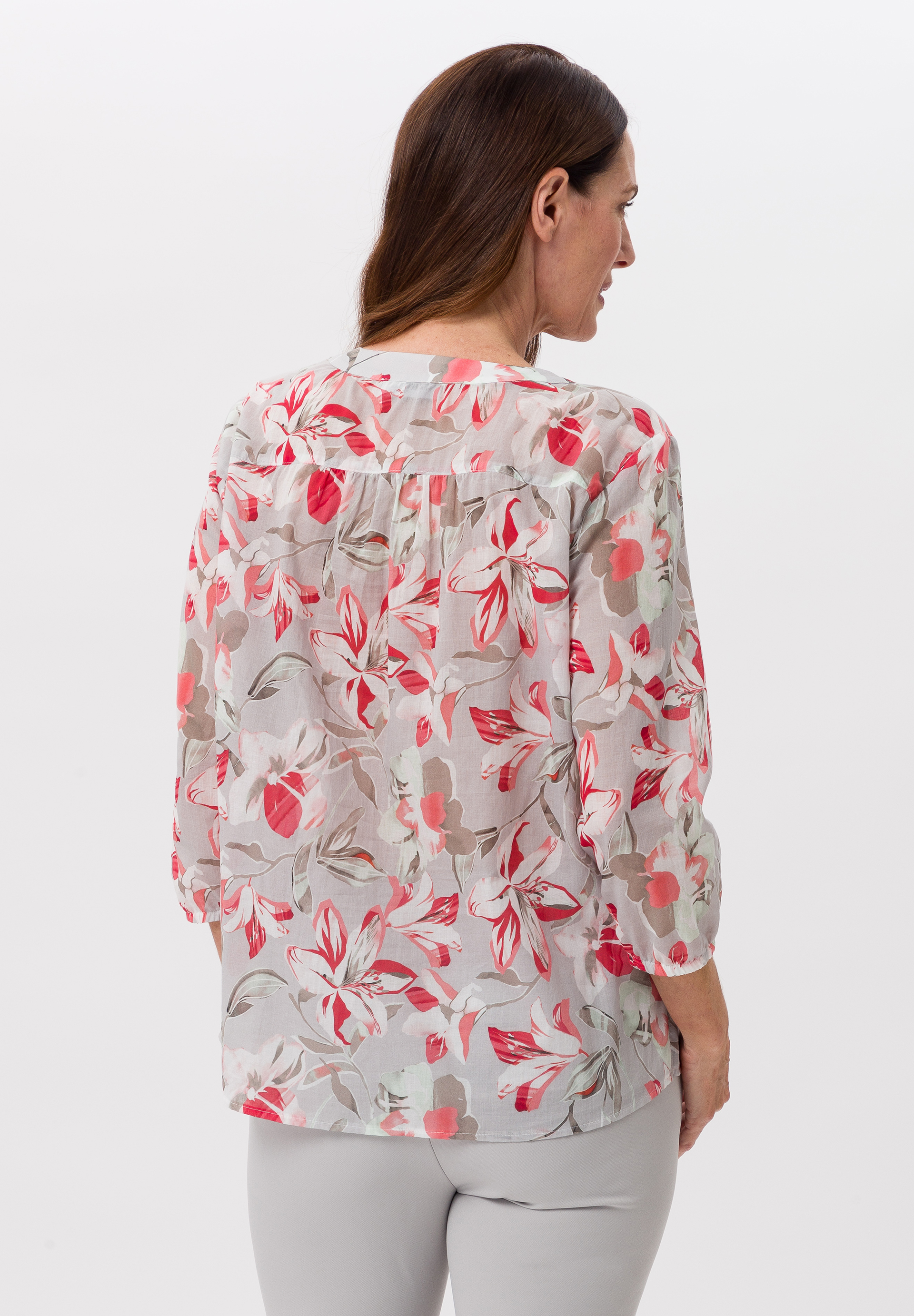 Diese feminin leichte Bluse avanciert zum Sommerliebling! Mit dem locker luftigen Schnitt verspricht sie auch bei hohen Temperaturen einen hohen Tragecomfort. Der feminine Ausschnitt und die Kräuselweite im Vorder- und Rückteil betonen den sommerlichen Look.