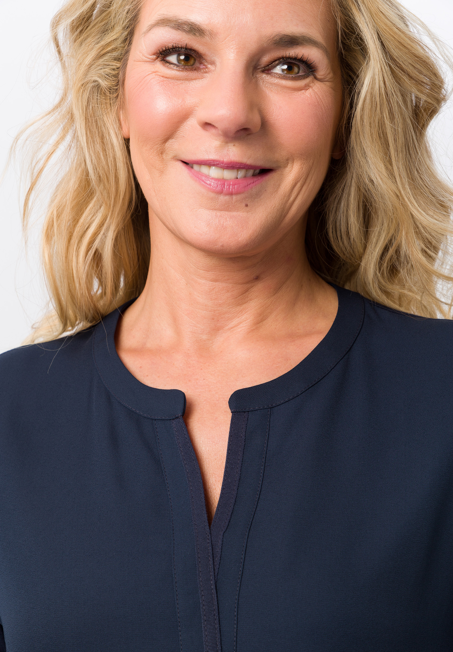 So sieht ein chices Blusenshirt aus! Mit femininer Ausstrahlung und vielseitig einsetzbar. Das gedoppelte Vorderteil und der geschlitzte Rundhalsausschnitt mit Dekoband setzen modische Akzente.